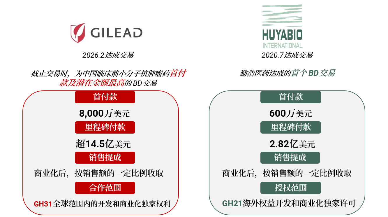 目前,在全球化研发管理团队的领导下,勤浩医药形成了以多个高价值靶向抗肿瘤品种为核心的产品管线,并有着突破性的进展。2020年,与沪亚生物国际成功签署SHP2项目海外权益转让,2026年,与吉利德(Gilead)就MAT2A项目达成全球合作协议,标志着勤浩的创新能力及产品价值已赢得跨国药企的认可,为持续推进国际化战略奠定重要基石。