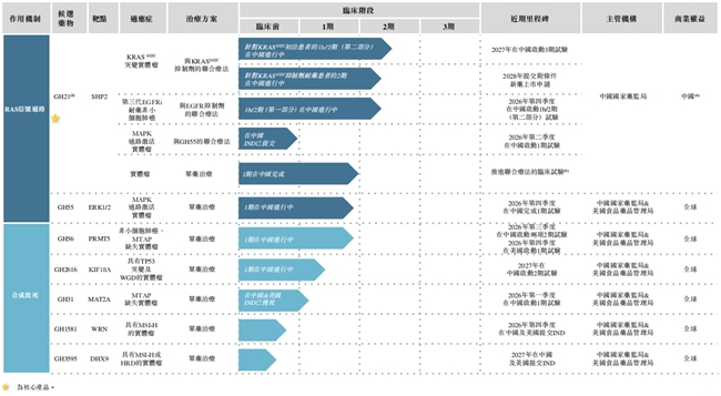 勤浩医药布局的创新合成致死管线,精准契合全球抗肿瘤药物研发的热门赛道与市场需求。截至目前,该公司正在开发五款通过合成致死作用发挥抗肿瘤活性的候选药物,包括处于1期临床试验阶段的MTA协同型PRMT5抑制剂GH56、处于1期临床试验阶段的KIF18A抑制剂GH2616、已获得中国国家药监局及美国FDA IND批准的MAT2A抑制剂GH31、处于临床前阶段的WRN抑制剂GH1581,以及处于临床前阶段的DHX9抑制剂GH3595。