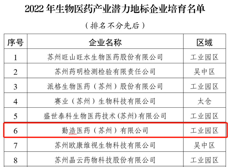 2023年5月18日,中国苏州——致力于利用组合技术平台开发全球新一代抗肿瘤小分子药物的研发企业,勤浩医药于近日入选“苏州市生物医药产业潜力地标企业培育名单”。此次入选是对勤浩医药持续创新能力及研发实力的认可。